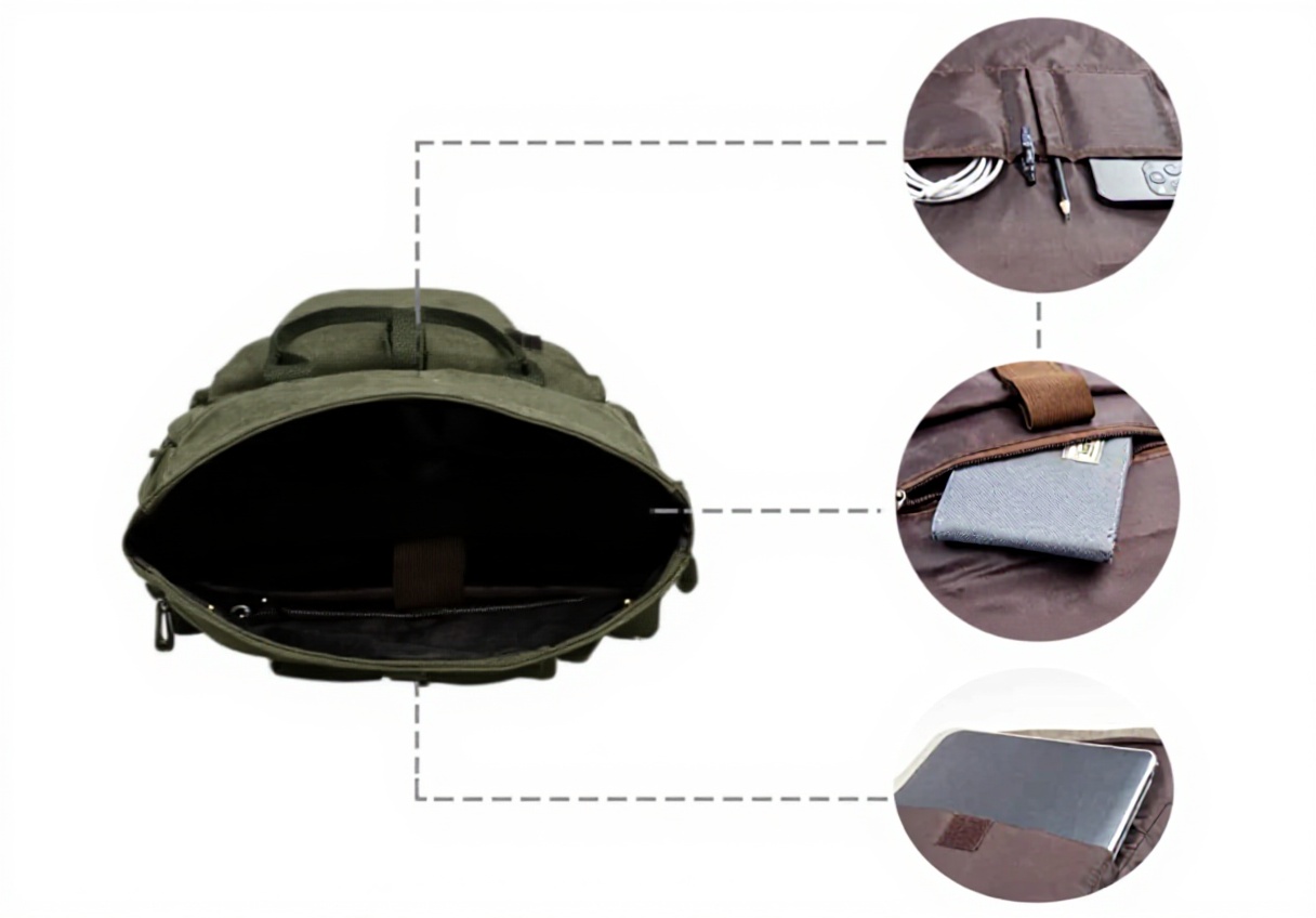 KAUKKO Sac à Dos Nylon Vintage Ordinateur Portable 12 Pouces